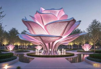 綻光粉蕊:不銹鋼花之景觀雕塑