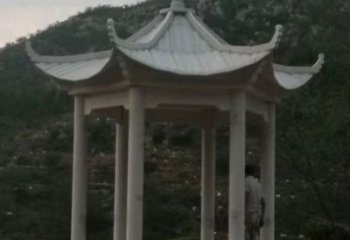 晚霞色石雕大理石涼亭,點綴園林美景