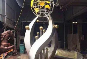 • 地球儀標志不銹鋼標志雕塑傳達和諧與愛的美好信息